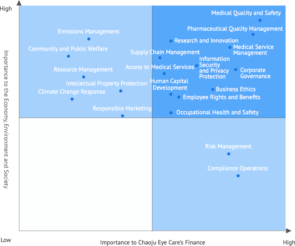 Adhering to the vision of “Being a Leader of Happy Ophthalmic Healthcare”, the Group continued to focus on development and value growth in the ophthalmology sector, identified six key areas related to our own operational development. Moreover, we have established and executed the ESG strategies for the high-quality development of the Group.