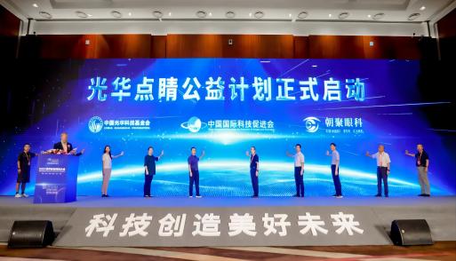 2023年中国国际服务贸易交易会(以下简称“服贸会”CIFTIS)于9月2日-6日在北京举办。由中国光华科技基金会联合中国国际科技促进会共同发起设立的“光华点睛计划”于9月5日在服贸会期间召开的世界前沿科技大会上盛大启动,朝聚眼科作为首期捐赠企业代表、共同发起人,一起参加了该计划的启动仪式。中国光华科技基金会副秘书长钟彬清先生、科技事业中心主任严石先生、中国国际科技促进会监事长殷学斌先生、副秘书长郑华林先生、副秘书长张勇生先生、副秘书长张世谨先生、信创产业分会秘书长崔志国先生、中医药传承创新分会秘书长苏宝塍先生、朝聚眼科首席战略官兼董事会秘书解淳女士、战略管理总监易蕾女士共同上台点亮启动计划。