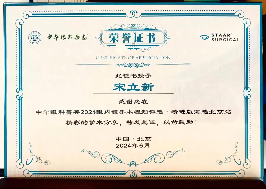 中华眼科菁英2024眼内镜手术视频评选由STAAR公司和中华眼科杂志联合举办,旨在为青年医师提供交流和成长的平台,助力眼内屈光手术发展。
