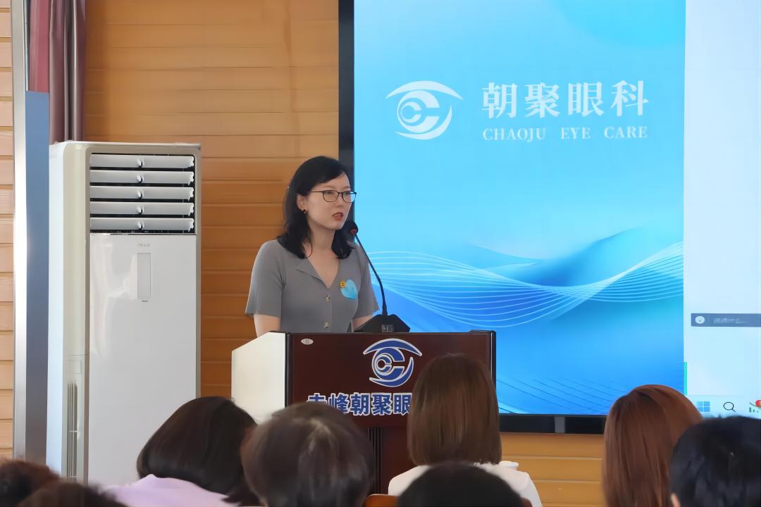品牌营销经理张菁以《品牌VI导视的应用》为主题,为大家详细介绍了朝聚眼科品牌方面的相关知识。