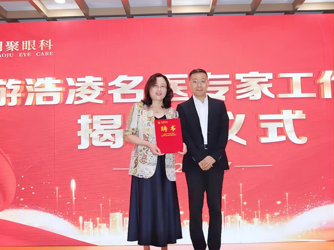 会上张家口朝聚眼科医院业务院长刘彩辉宣布张家口朝聚眼科医院游浩凌名医工作室正式成立,并授予聘书及进行了名医工作室揭牌仪式。