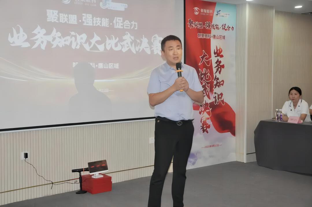 集团投资发展部总监吴强出席活动并发表了重要讲话。他充分肯定了本次大赛举办带来的意义及影响力,更加期望唐山区域全员都能掌握眼科业务知识,在市场竞争中以更好的服务、更优的质量在唐山眼科市场脱颖而出。