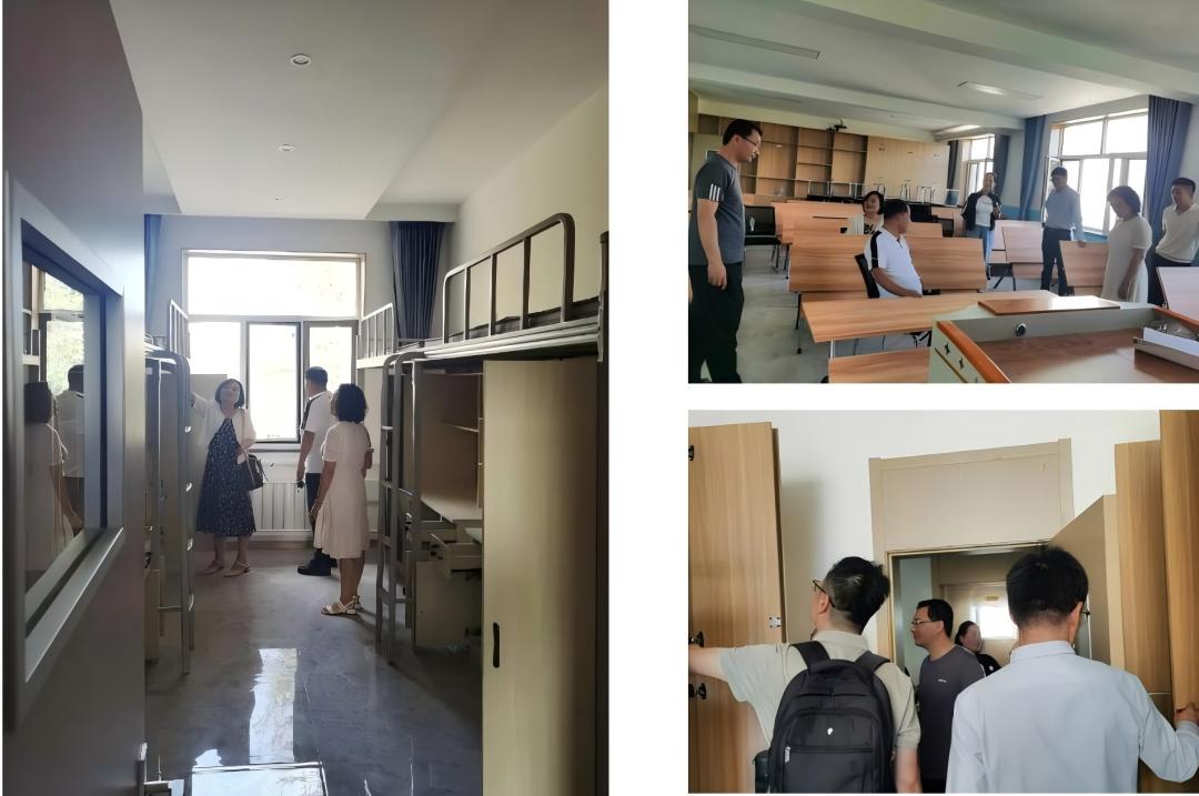 双方一行共同参观了改造后的学生教室、学生宿舍等区域,对装修材料、产品质量、环境安全及装修效果等方面进行了巡查。