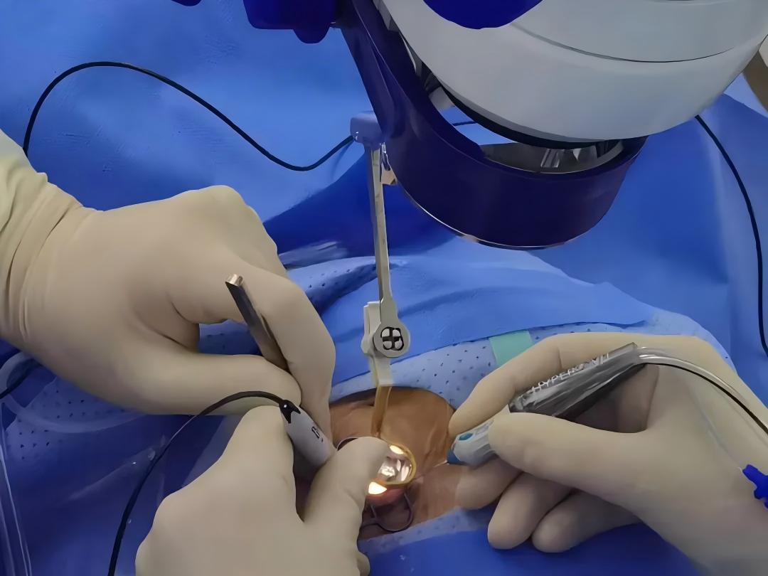 在眼科医学领域,糖尿病性牵拉性视网膜脱离手术堪称一项极具挑战性的高难度手术。手术医生在左眼后入路玻璃体切除,全程操作精细入微,难度极大,对医生的操作技巧和手术经验要求极高。